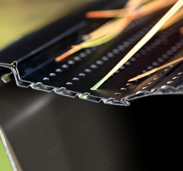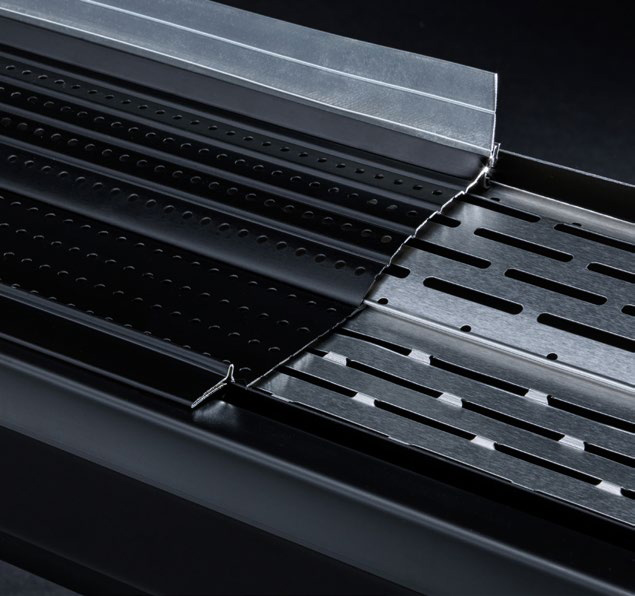 The exclusive Alu-Perf technology is the result of extensive research and development. The product has 489 holes every 19 inches (48 cm). This allows water to drain at the same rate as a 2 in. x 3 in. (5 cm x 7.5 cm) downspout.